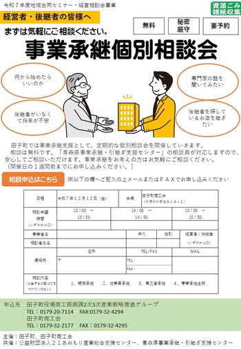 町では事業承継支援として、定期的な個別相談会を開催していきます。